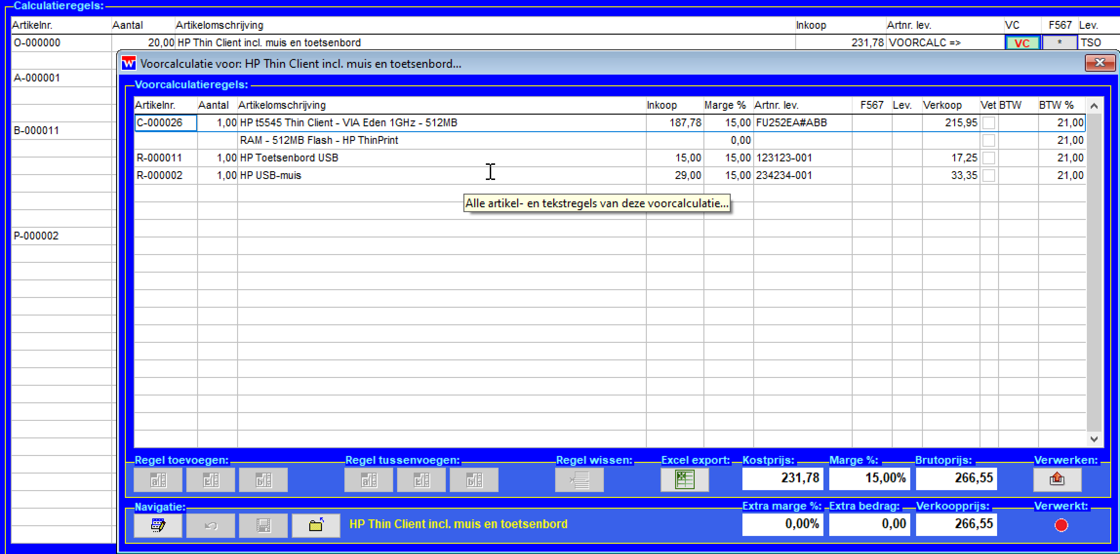 Uitgebreide voorcalculaties voor al uw offertes De WinVIS calculatiemodule is uitgebreid met voorcalculaties. Hierdoor kun je nu bij ieder artikel een voorcalculatie toevoegen, waardoor je per artikel in je offerte een prijsopbouw kunt vastleggen. In de voorcalculatie kun je per onderdeel de prijzen, marge etc. invoeren. Heb je alles ingevoerd, dan kun je de kostprijs én de verkoopprijs met één muisklik in de offerte opnemen. Zo kun je ook een commerciële omschrijving gebruiken in je offertetekst en een heel gespecificeerde of technische omschrijving in de voorcalculatie.